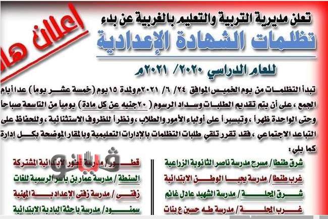 فتح باب تلقي التظلمات على نتائج امتحانات الشهادة الإعدادية بالغربية