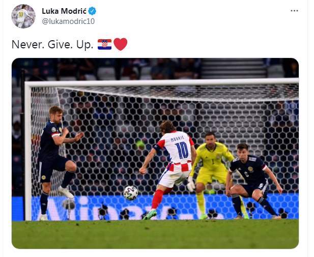 وكتب لوكا مودريتش تغريدة على تويتر: "لا تستسلم أبدًا"