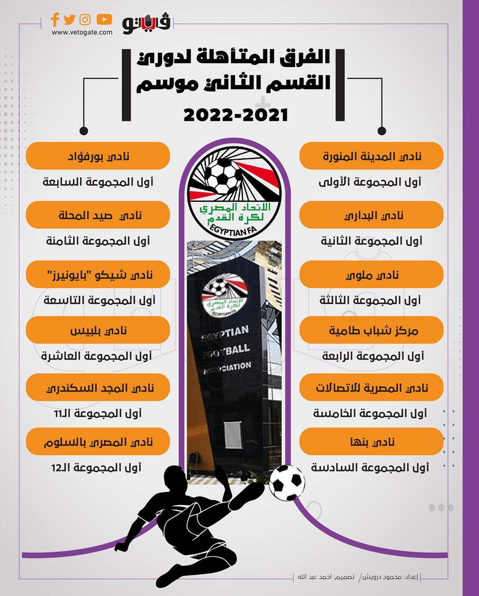 الفرق المتأهلة لدوري القسم الثاني موسم 2021-2022 | إنفوجراف