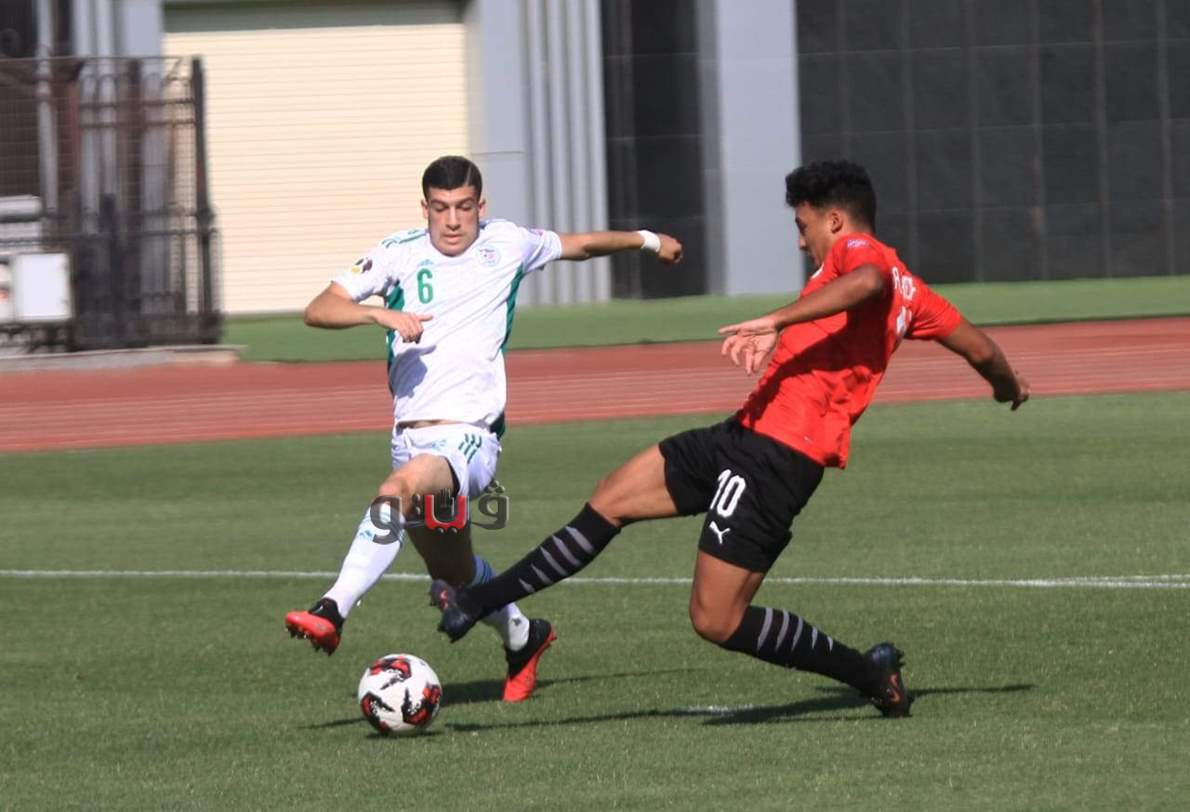 وكاد أحمد زكي مهاجم منتخب مصر أن يسجل الهدف الأول للفراعنة الصغار، بكرة خلفية مزدوجة، ولكنها ذهبت بجوار القائم الأيسر لمرمى الحارس الجزائري.