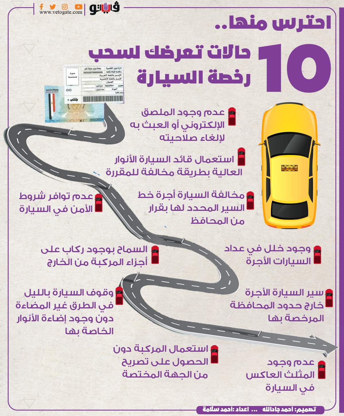 احترس منها.. 10 حالات تعرضك لسحب رخصة السيارة | إنفوجراف