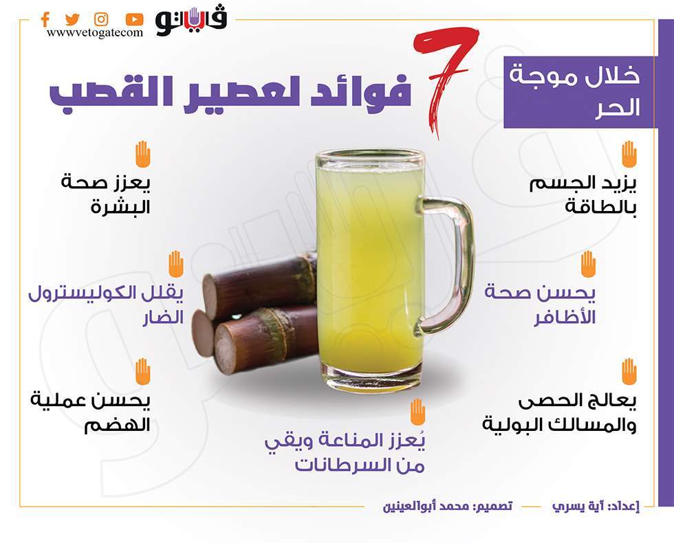 خلال موجة الحر.. 7 فوائد لعصير القصب | انفوجراف