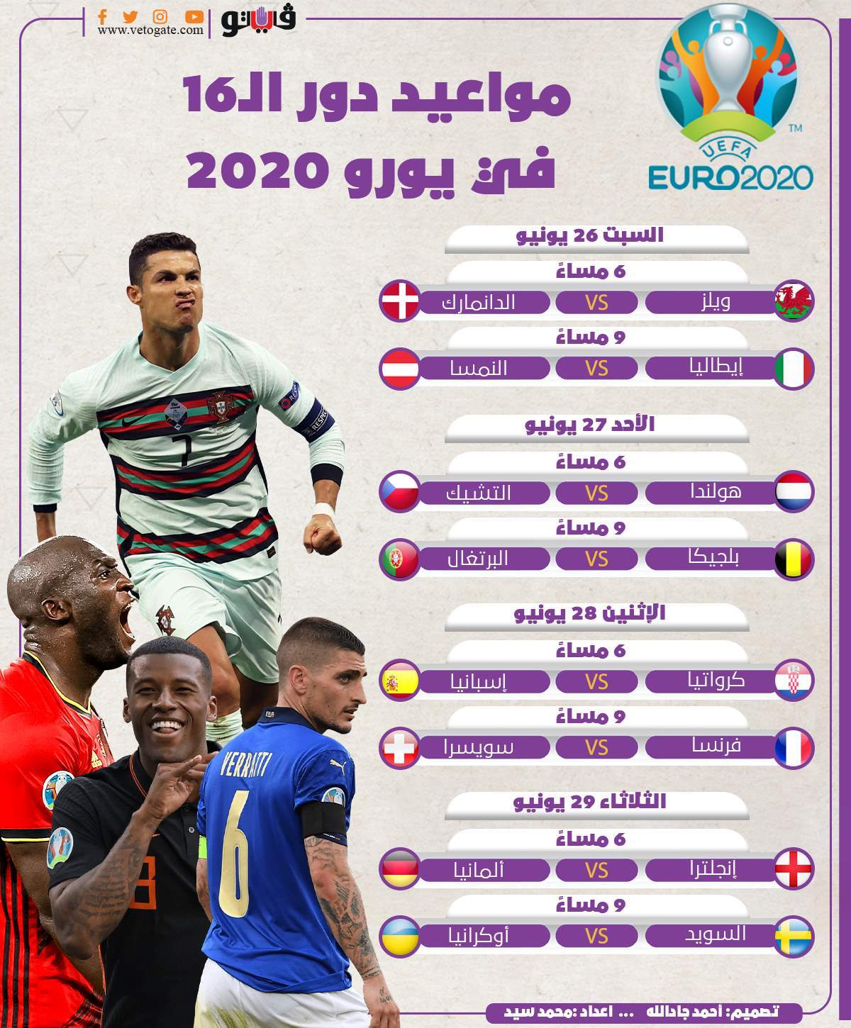 مواعيد دور الـ 16 في يورو 2020 | انفوجراف الخميس 24/يونيو/2021 - 02:40 م 6/24/2021 2:40:24 PM يورو 2020 محمد سيد شارك طباعة 18 حجم الخط يشهد السبت المقبل، انطلاق مباريات دور الستة عشر من بطولة كأس أمم أوروبا "يورو 2020". شارك طباعة فرنسا سويسرا يورو 2020 هولندا ألمانيا بلجيكا البرتغال إيطاليا