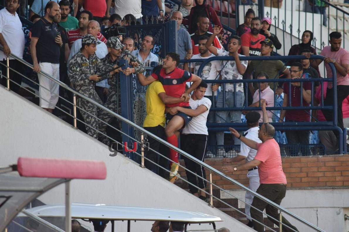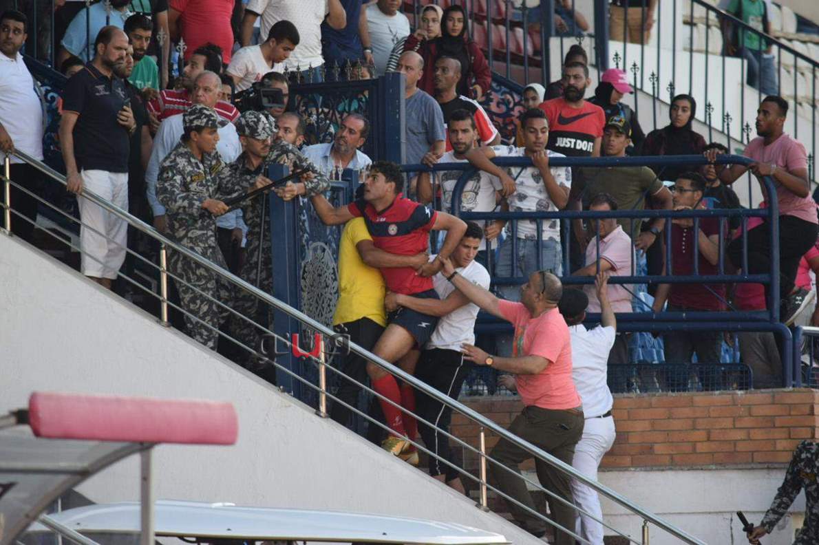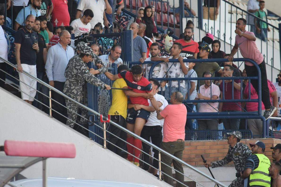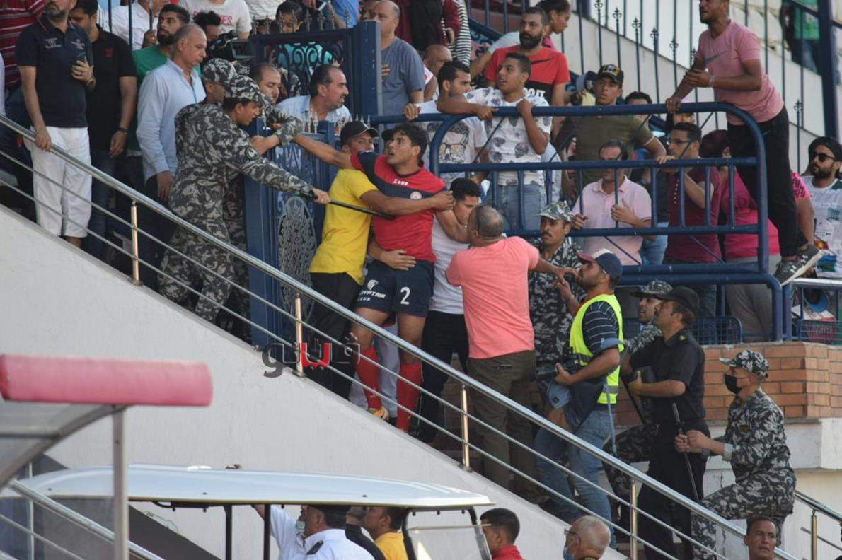 اشتباكات وأحداث مؤسفة بعد نهاية مباراة حرس الحدود وكفر الشيخ | صور