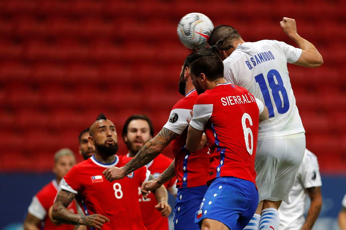 🥅⚽️ برايان ساموديو يفتتح التسجيل لمنتخب باراغواي برأسية قوية استقرت في شباك كلاوديو برافو #CopaAmerica pic.twitter.com/mPBqj9RzOo