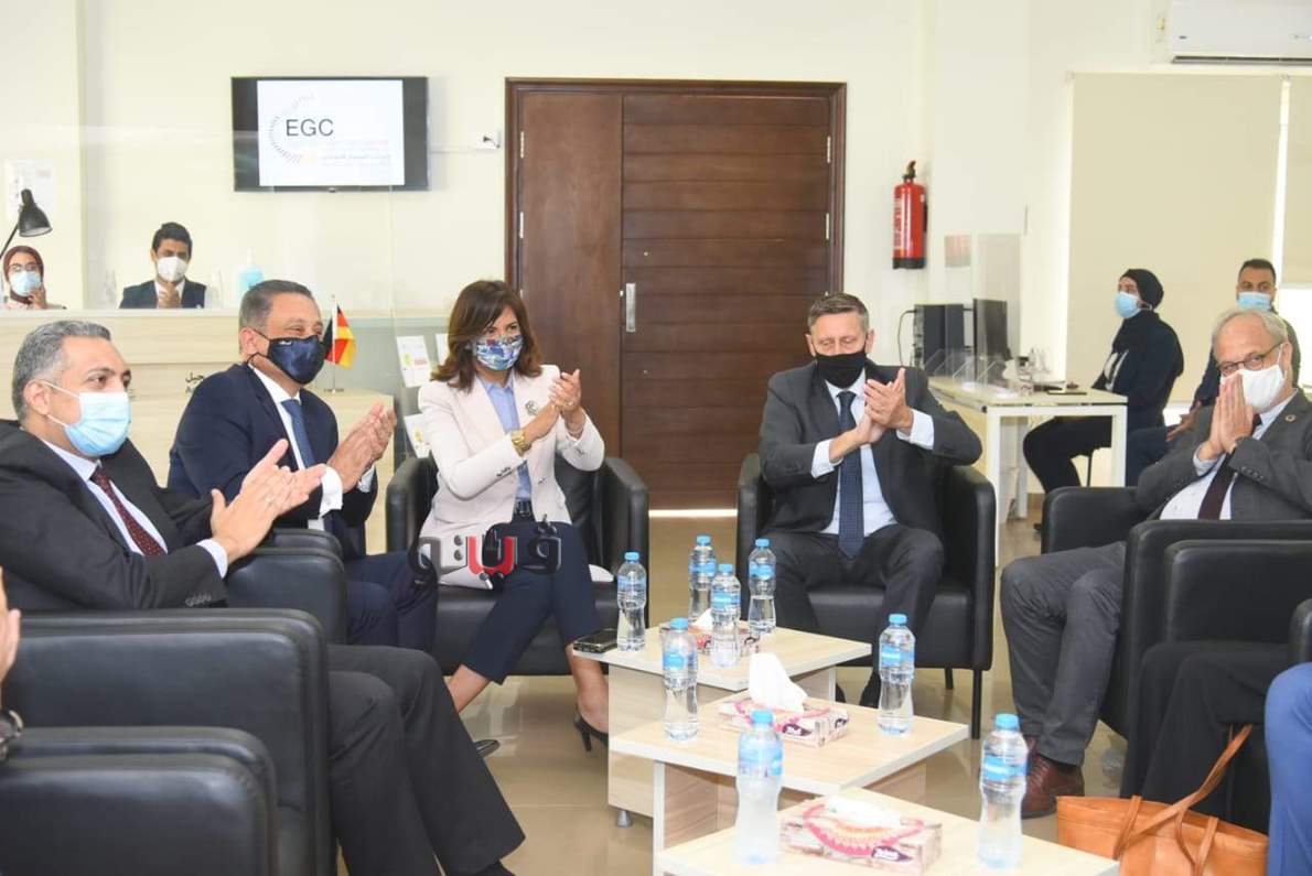 وكان في استقبالها بمقر المركز، سيريل نون سفير ألمانيا بالقاهرة، و أوفا جيلين مستشار أول السفارة للتعاون الدولي، والدكتور ألكساندر سوليجا مدير الوكالة الألمانية للتعاون الدولي GIZ بالقاهرة، وكذلك عدد كبير من أعضاء المركز من الجانبين المصري والألماني.