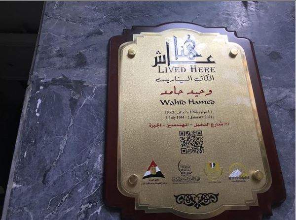 وضع لافتة عاش هنا على منزل الراحل وحيد حامد