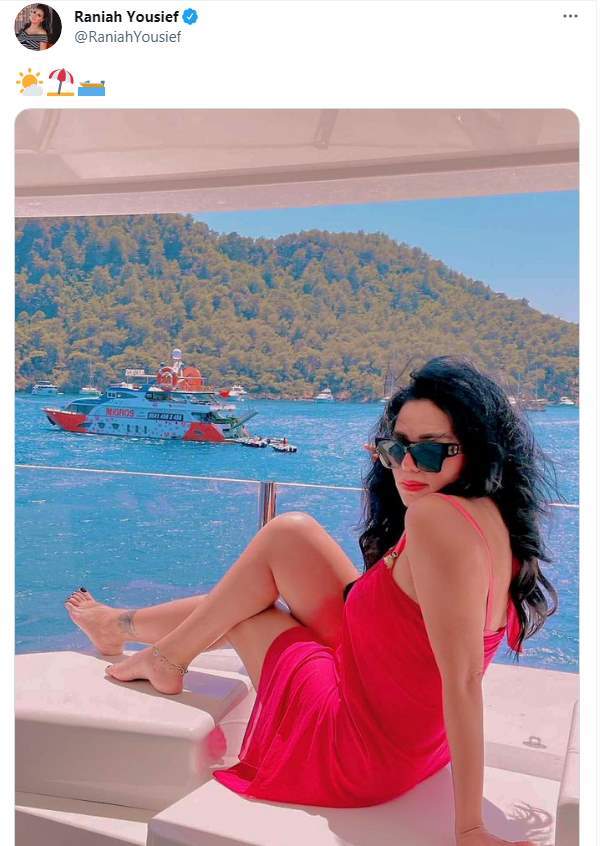رانيا يوسف تثير الجدل بملابس بحر حمراء والنشطاء: يارب الأهلي يكسب