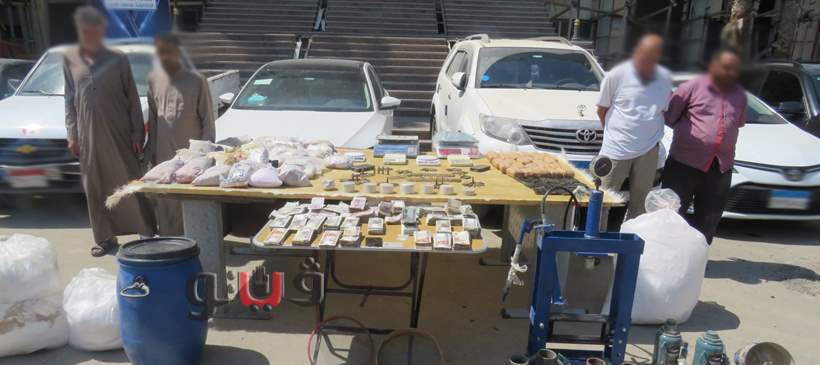 وعقب تقنين الإجراءات بالتنسيق مع قطاع الأمن العام ومشاركة مديريات أمن القاهرة والجيزة والقليوبية وقوات الأمن المركزى والإدارة العامة لتدريب كلاب الأمن والحراسة تم إستهداف عناصر التشكيل من خلال عدة مأموريات أسفرت عن ضبطهم جميعاً وبحوزتهم كمية من مخدر الهيروين الخام وزنت 66 كيلو جرام ، 2523 ) طربة من مخدر الحشيش وكمية من ذات المخدر وزنت جميعها حوالى (262كيلو جرام ) ،كمية من مخدر الآيس ، ( 15000 ) قرص لعقار الكبتاجون المخدر ، بندقية آلية عيار 7,62×39مم ، طبنجة ، مسدس، مبالغ مالية كبيرة (أكثر من مليون جنيه – عملات أجنبية مختلفة) وماكينة عد نقود ، ميزان حساس ، ( 3 ) أجهزة لاب توب ، 39 هاتف محمول ، ( 8 ) سيارات إحداهما بدون لوحات ، ( 31 ) شيكارة صوديوم ( مواد خام تستخدم فى خلط الهيروين ) وزنت ( 775 كيلو جرام ) .