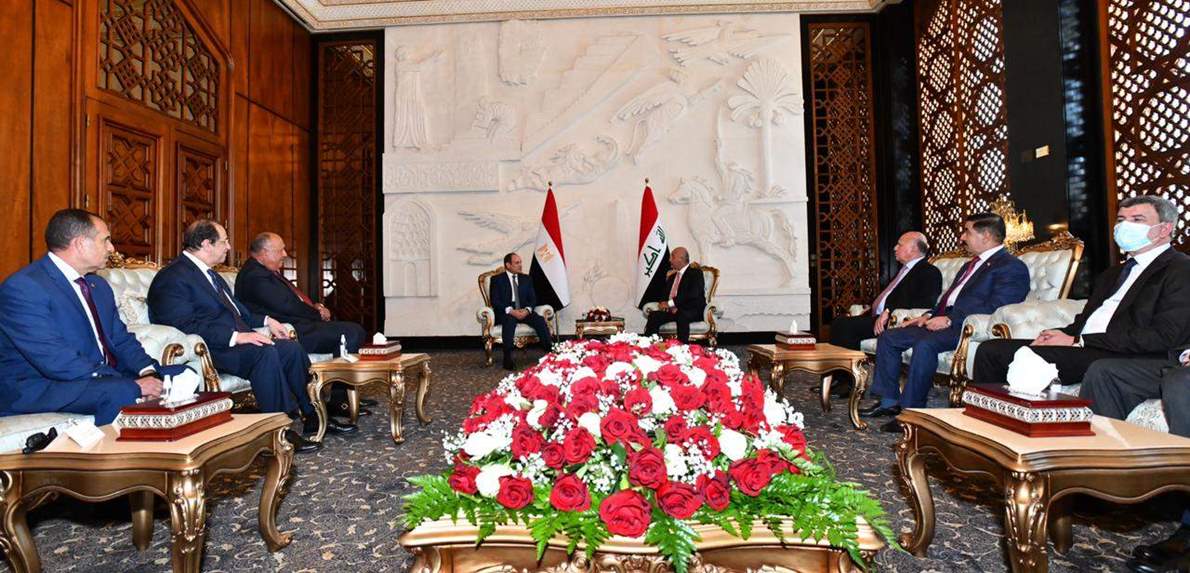 من جانبه؛ رحب الرئيس العراقي بأخيه الرئيس ضيفاً عزيزاً على بغداد، مؤكداً عمق الروابط التي تجمع بين البلدين الشقيقين، وحرص بلاده على الارتقاء بالتعاون مع مصر إلى مستوى الشراكة الاستراتيجية، وذلك لمصلحة الشعبين الشقيقين، وكحجر أساس للحفاظ على الأمن والاستقرار الإقليمي وإعادة التوازن للمنطقة، وذلك في ضوء الأهمية المحورية لمصر إقليمياً ودولياً.