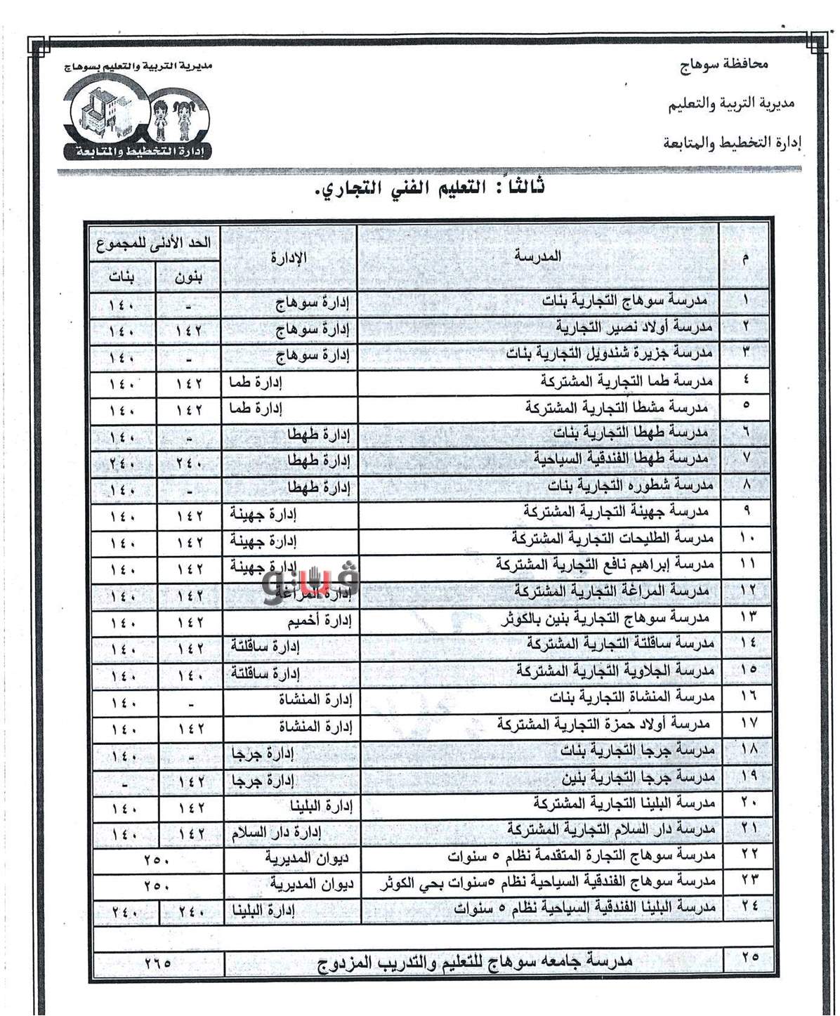 تنسيق الثانوي الصناعي 2021 محافظة سوهاج