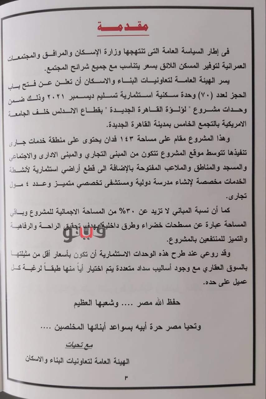 كراسة حجز شقق تعاونيات الإسكان بالقاهرة الجديدة | صور