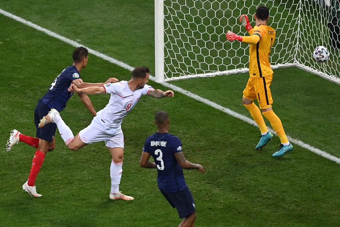 تأهل منتخب سويسرا إلى الدور ربع النهائي من بطولة يورو 2020 بعد فوزه على نظيره فرنسا 4/5 بركلات الترجيح، بعد انتهاء الوقتين الأصلي والإضافي للمباراة بالتعادل 3/3، والتي أقيمت في دور الـ16 على ملعب بوخارست الوطني في رومانيا.