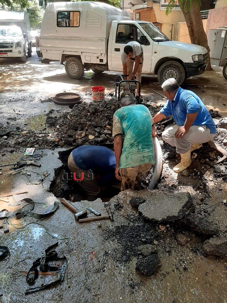 إصلاح مواسير مياه الشرب والصرف الصحي بالجيزة | صور