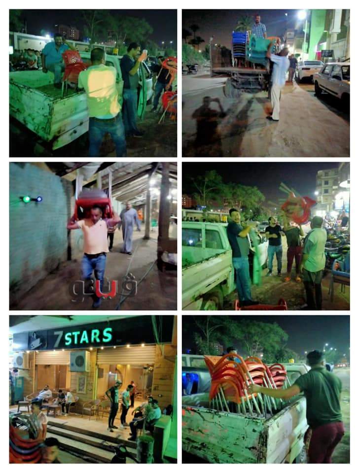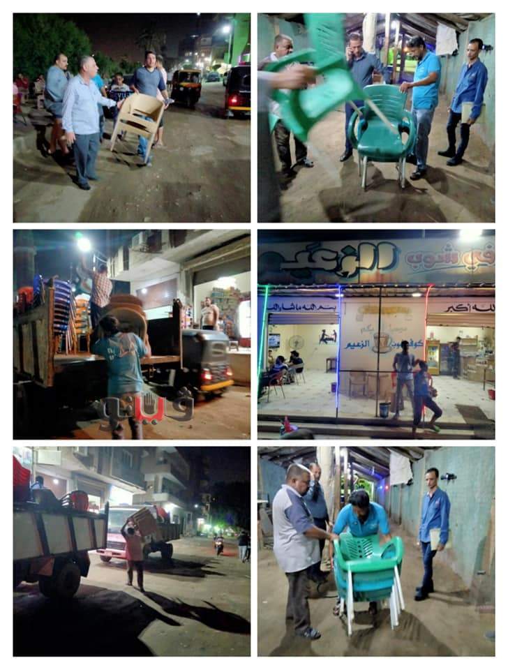 على الكافيتريات والمقاهي والمحال والباعة الجائلين بعدد من الشوارع لرفع أوجه