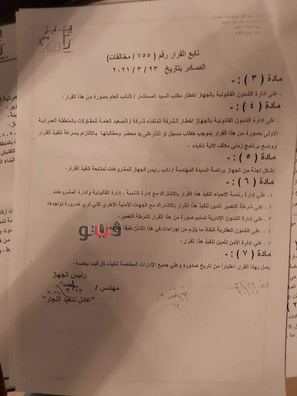 وباللجوء للشركة لإعادة النظر في قرار اللجنة بالترميم لأن المسألة مجرد وقت، خاصة أن باقي العقارات مبنية من نفس المواد الخام.. أبلغتنا الشركة بالرد علينا خلال 3 أشهر.