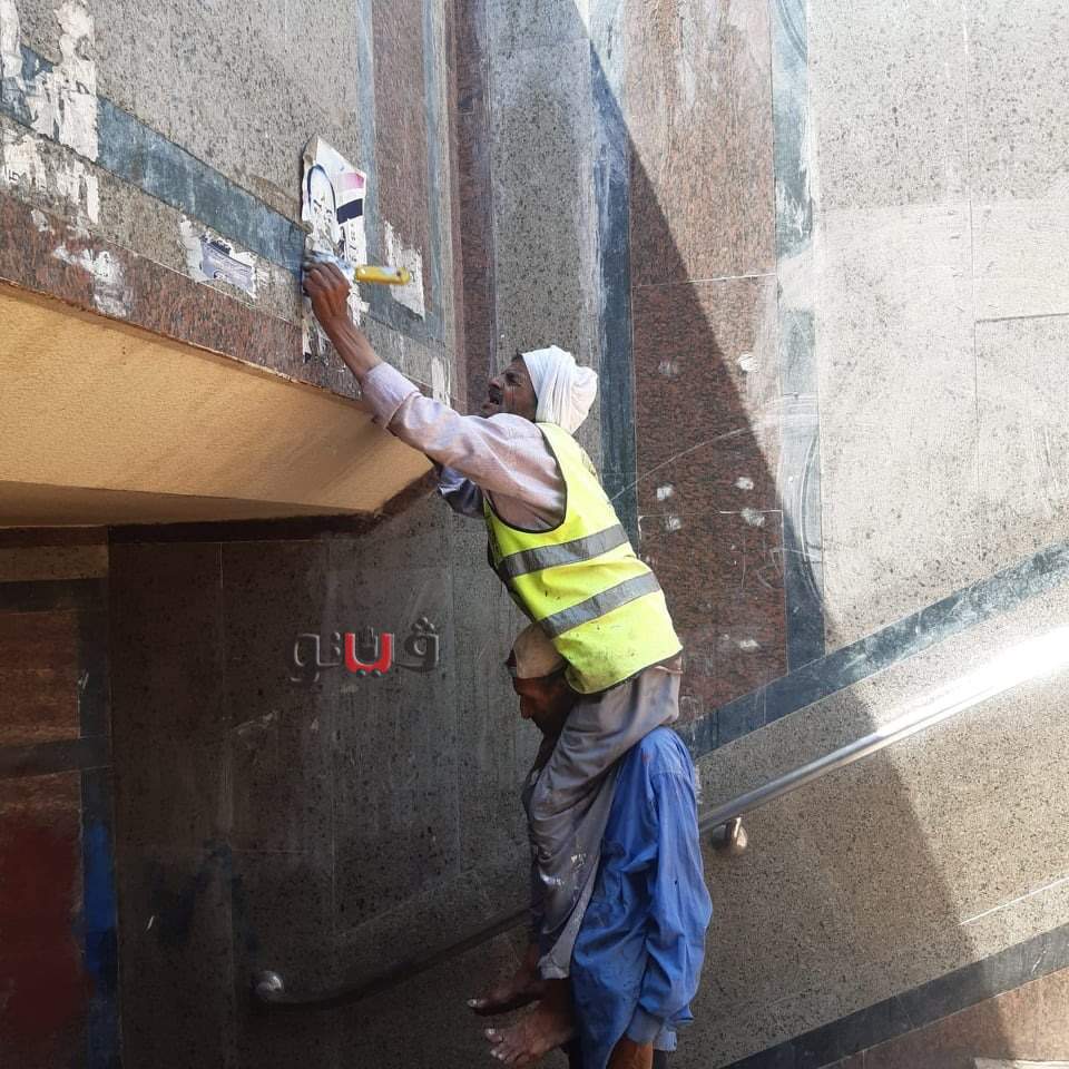 وأوضح محمد بشير رئيس حي غرب أسيوط إنه تم شن حملة نظافة كاملة لنفق المشاه بالزهراء شملت رفع كافة المخلفات وإزالة كافة الملصقات من النفق فضلاً عن غسيل للحوائط وأرضيات النفق من أجل الحفاظ على المظهر الجمالي.