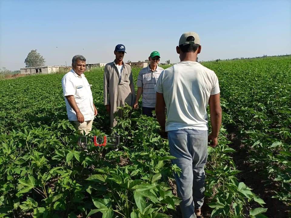 وتم شرح أهم التوصيات والإرشادات الخاصة بزراعة القطن خاصة مكافحة الآفات الاولية مثل التربس والمن والعنكبوت الاحمر وتعريف الافة وطرق مكافحتها وفحص المصايد بمختلف انواعها كل 3 أيام للكشف المبكر عند تعداد افة دودة ورق القطن . والحالة العامة لزراعات القطن جيدة ومبشرة.