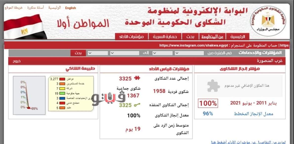 حققت رئاسة حى غرب المنصورة ١٠٠% طبقا لما ورد بالتقرير النصف سنوى الخاص بقياس مؤشرات الأداء بمنظومة الشكاوى الحكومية الموحدة، والذي يرصد حصاد معدل إنجاز منظومة الشكاوى الحكومية عن العام ٢٠٢١ وحتى ٣٠-٦-٢٠٢١ من أعداد الشكاوى ورصدها والاستجابة لها وسبل التواصل مع المواطنين.