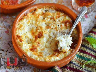 - يرفع الطاجن فى الفرن حتى يسخن ثم يضاف إليه الأرز واللبن الساخن والكريمة.