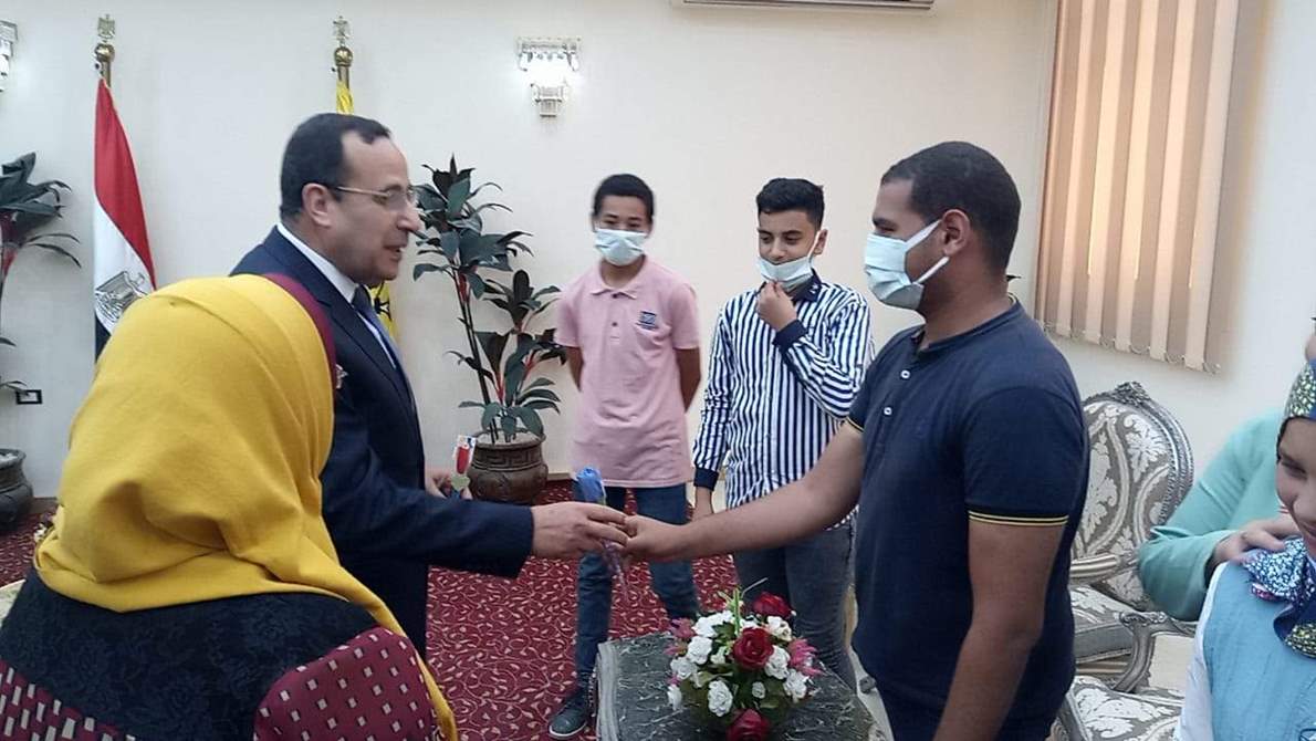وأعلن عن اهتمام القيادة السياسية وجميع أجهزة الدولة بذوى الاحتياجات الخاصة والأيتام لدمجهم في المجتمع وتحقيق مطالبهم ، ووجه بتخصيص سيارة لنقلهم لقضاء يوم ترفيهى على شاطىء البحر واستضافتهم على وجبة غذاء .