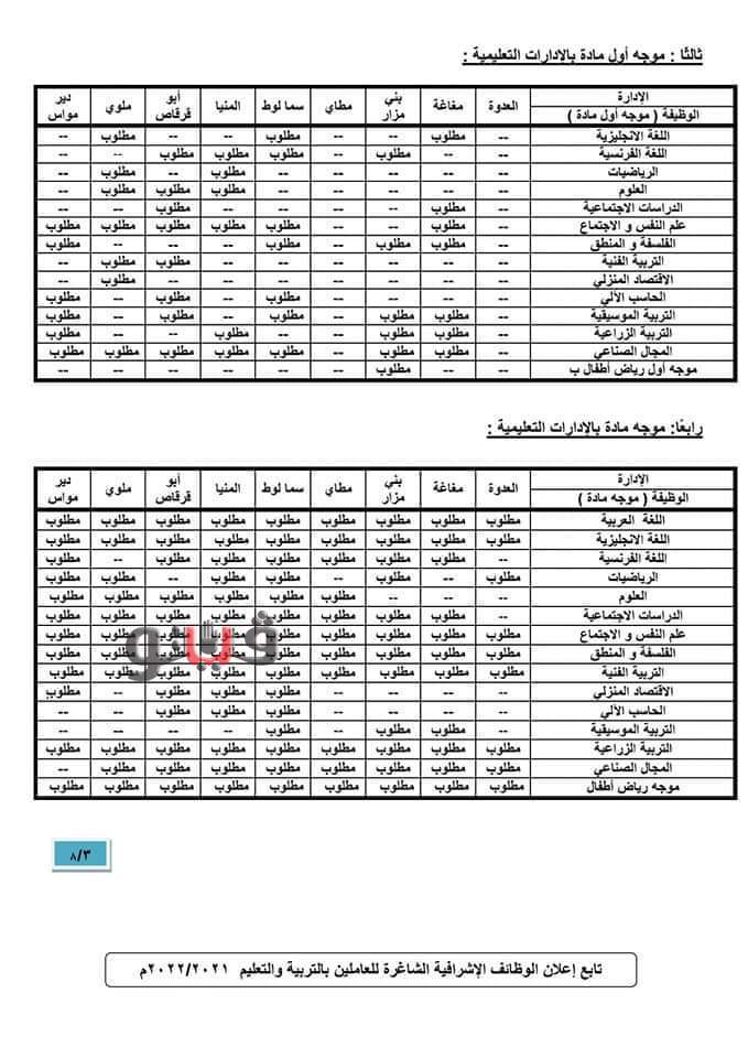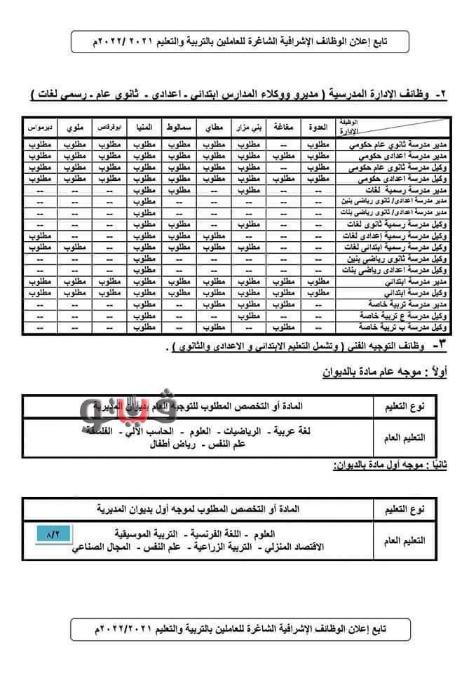 وتنشر فيتو خلال الصور التالية الوظائف الإشرافية الشاغرة للعام الدراسي ٢٠٢١/ ٢٠٢٢ بمديرية التربية والتعليم بالمنيا: