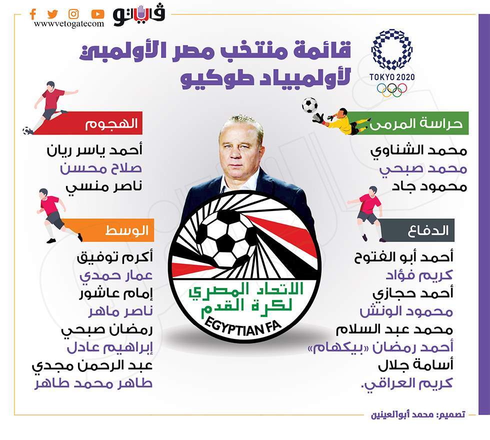 قائمة منتخب مصر الأولمبي لأولمبياد طوكيو | انفوجراف الجمعة 02/يوليو/2021 - 08:09 م 7/2/2021 8:09:40 PM منتخب مصر الاولمبي شارك طباعة 18 حجم الخط شارك طباعة شوقى غريب اولمبياد طوكيو منتخب مصر الاولمبي