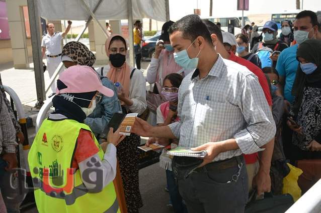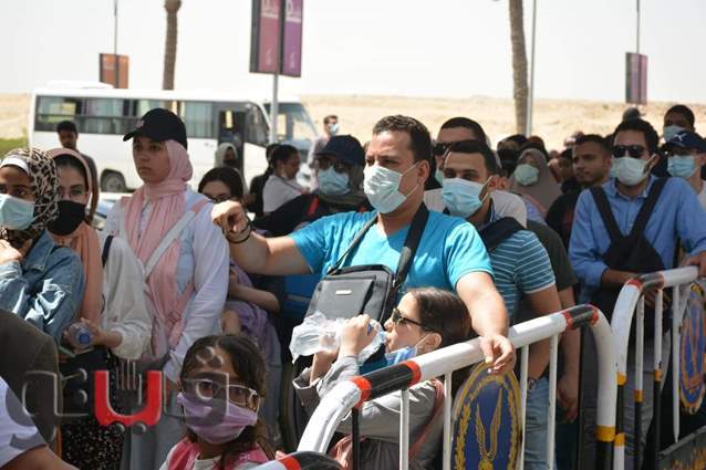 وحرص الزوار على ارتداء الكمامة الطبية، كما شدد القائمون على البوابات على قياس درجة الحرارة للزوار قبل الدخول وسط تكثيف أمني.