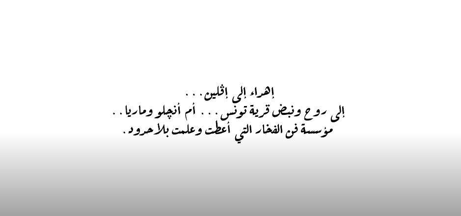 وكُتب في بداية الحلقة " إهداء إلى إيفلين .. إلى روح ونبض قرية تونس .. أم أنجلو وماريا .. مؤسسة فن الفخار التي أعطت وعلمت بلا حدود".