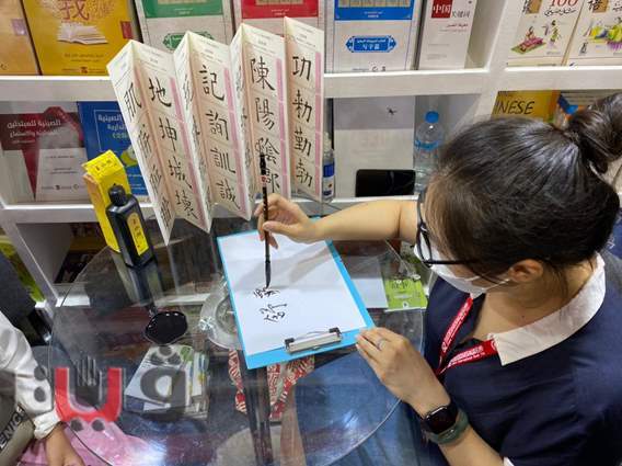 الجديد واللافت للنظر هذا العام في الدورة الـ52 من معرض القاهرة الدولي في بيت الحكمة الصيني، اقبال العشرات من الصغار والكبار على الفتاة الصينية التي تجلس في أحد أركان الجناح ممسكة بالريشة السوداء وترسم وعلى لوحة بيضاء متوسطة الحجم تكتب اسم كل زائر باللغة الصينية، تتحدث بالكاد اللغة العربية ولكنها تفهم كل اسم يمر عليها، في حين يصطف العشرات أمامها من أجل أن يكتب كل واحد منهم اسمه بالصينية مجانا وبدون مقابل وتبقى معه تذكار، ويؤكد عمرو مغيث المسئول عن الجناح على أن هذا الأمر يعكس مدى تعلق وحب المصريين للثقافة الصينية.