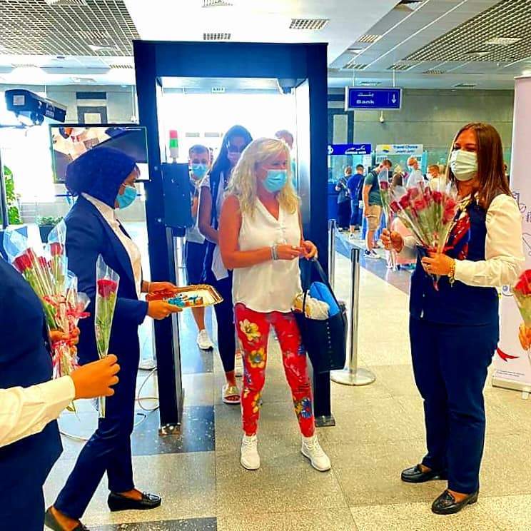 واستقبل فريق العلاقات العامة بالمطار الركاب بالورود مع تقديم الهدايا التذكارية لهم، وتم فحص شهادة تحليل «pcr» التي يحملها ركاب الرحلة، فضلاً عن إجراء الكشف الطبي والتحاليل الفورية لعدد من الركاب الذين لا يحملون شهادة pcr، وتم إنهاء إجراءات وصولهم بسهولة ويسر تام مع تطبيق كافة الإجراءات الاحترازية والوقائية.