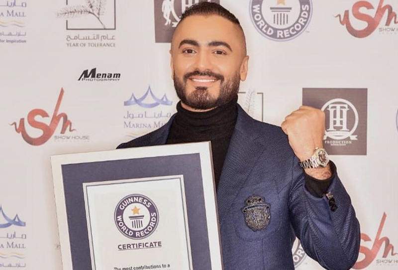 يليه الفنان تامر حسني الذي دخل موسوعة جينيس في عام 2019 لـأكثر عدد مشاركات على لوحة إعلانات في أبو ظبي.