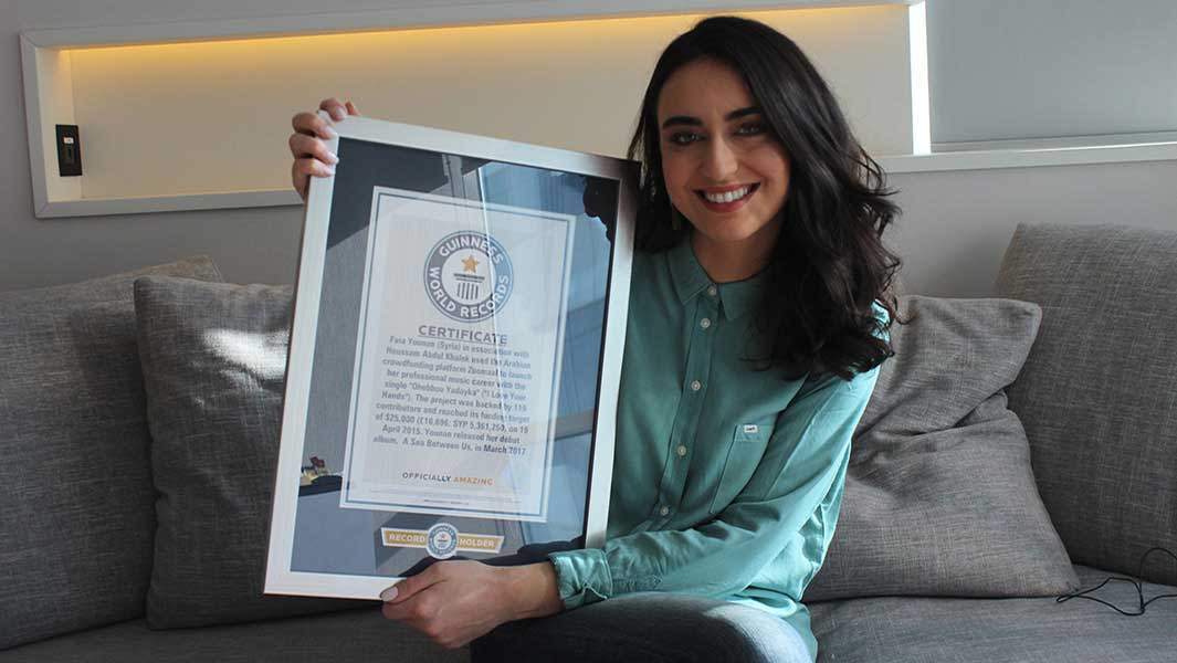 على الجانب العربي دخلت الفنانة السورية فايا يونان موسوعة جينيس للأرقام القياسية بأغنيتها الأولى "أحب يديك"، لتكون بذلك أول مطربة عربية تدخل الموسوعة العالمية من باب التمويل الجماعي.