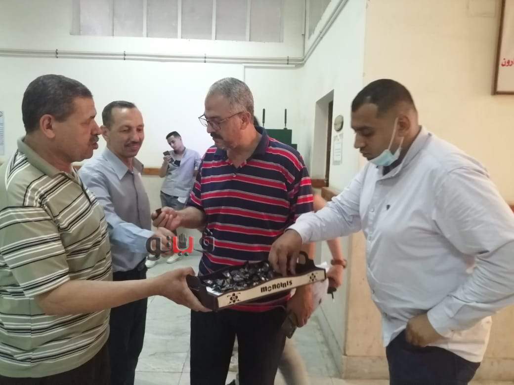 وزع الدكتور أسامة سعيد عميد كلية التجارة جامعة بنى سويف، الشيكولاتة على الطلاب