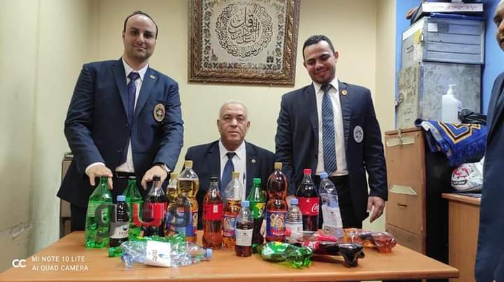 وتم تمرير الحقيبتين على جهاز الفحص بأشعة X-RAY بمعرفة حسام مصطفى مأمور الفحص فتلاحظ وجود عدد من زجاجات العصائر والمياه الغازية البلاستيكية المستعملة.