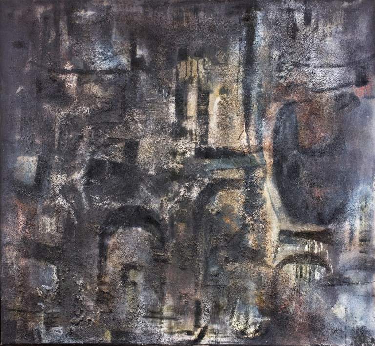 أما على صعيد المواد المستخدمة في تنفيذ اللوحة فقد توصلت إلى «مساومة»، إنْ صحت التسمية، قوامها «المكسيد ميديا»: مواد مختلفة، بما فيها استخدام الألوان القاتمة الأقرب إلى الألواح الطينية المحمرة بفعل الحرق.