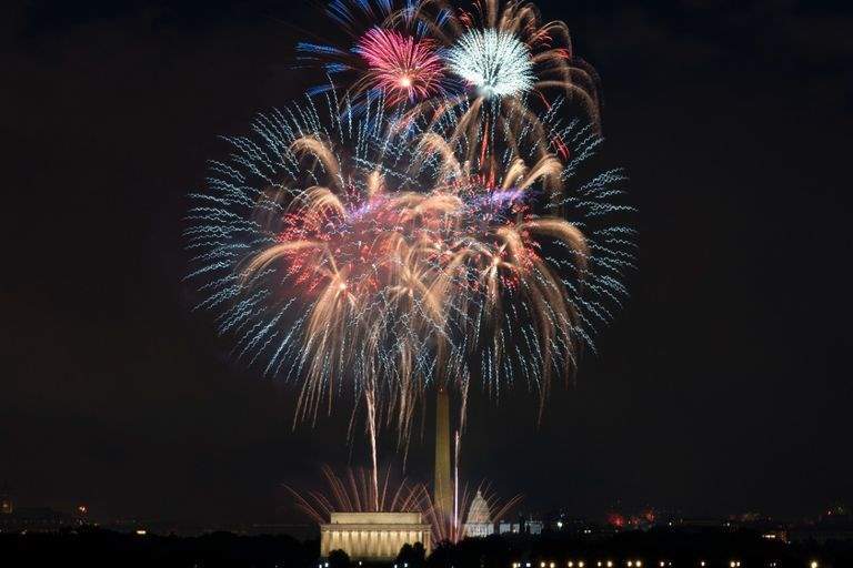 وفي واشنطن، توجت الحشود الضخمة محيط النصب التذكاري، إبراهام لنكولن، حيث انطلق عرض ضخم للألعاب النارية في تمام الساعة التاسعة مساء، ومناطق أخرى كثيرة في محيط العاصمة، لتعود تقاليد الرابع من يوليو الأكثر شهرة للعاصمة الأمريكية.