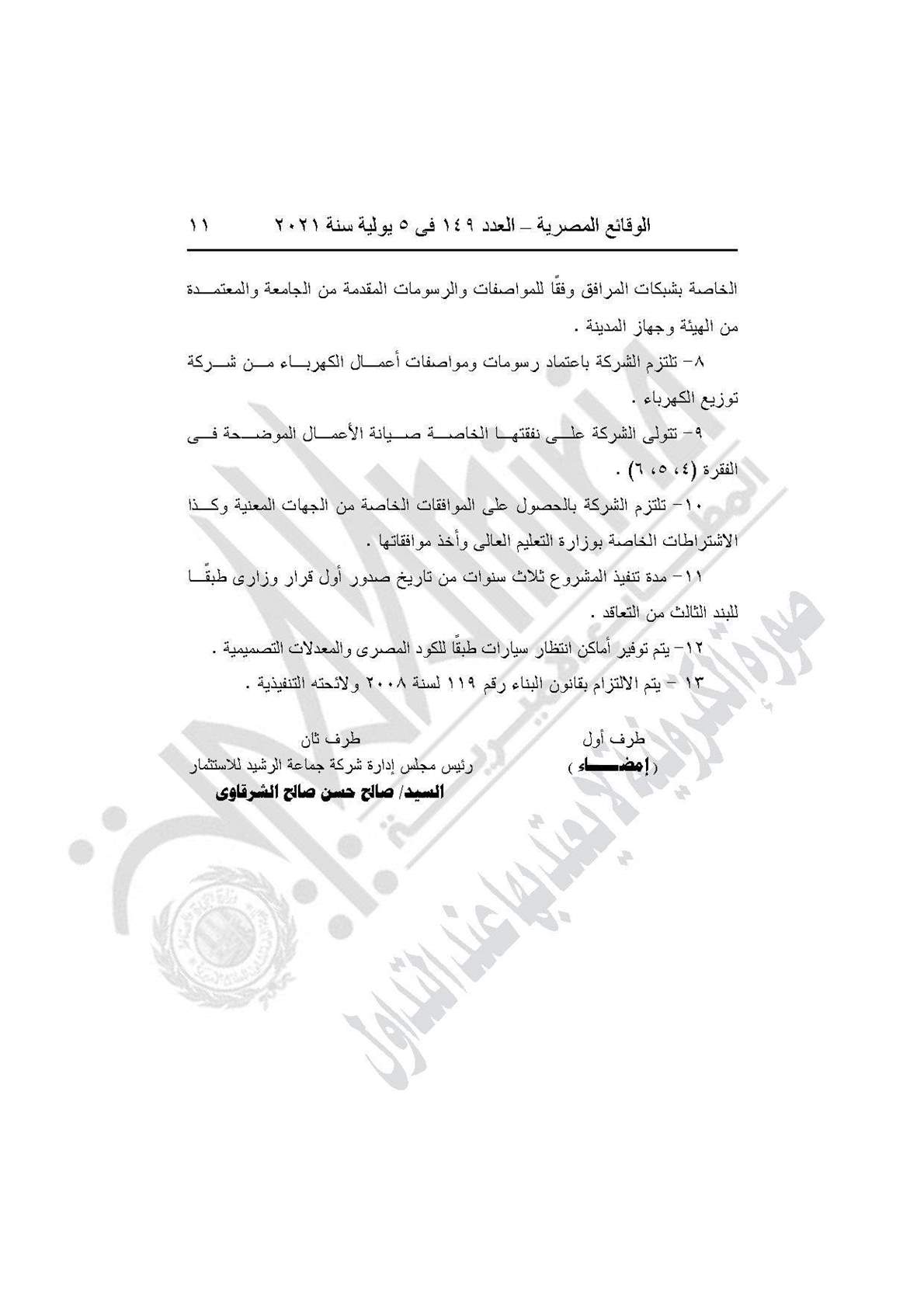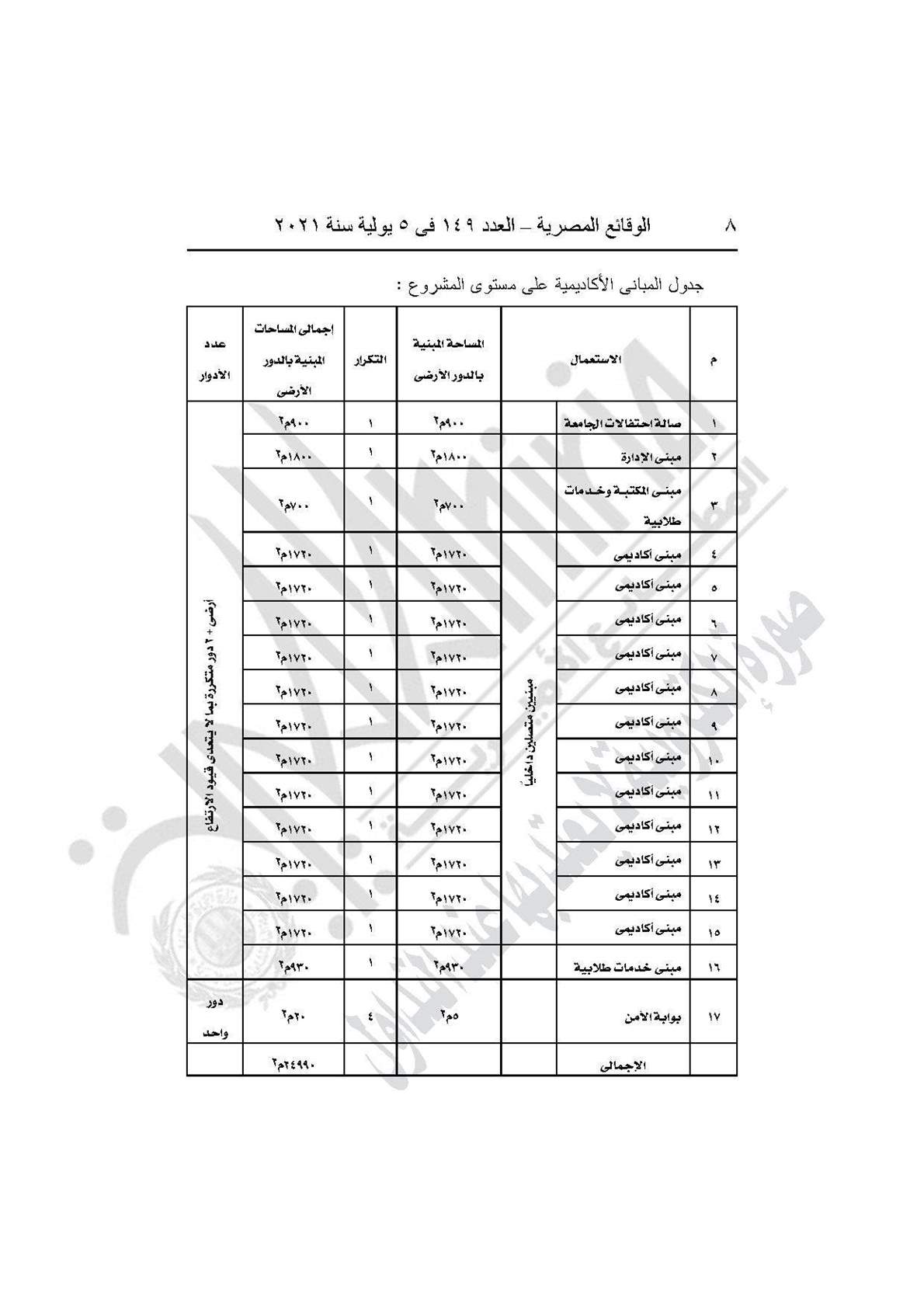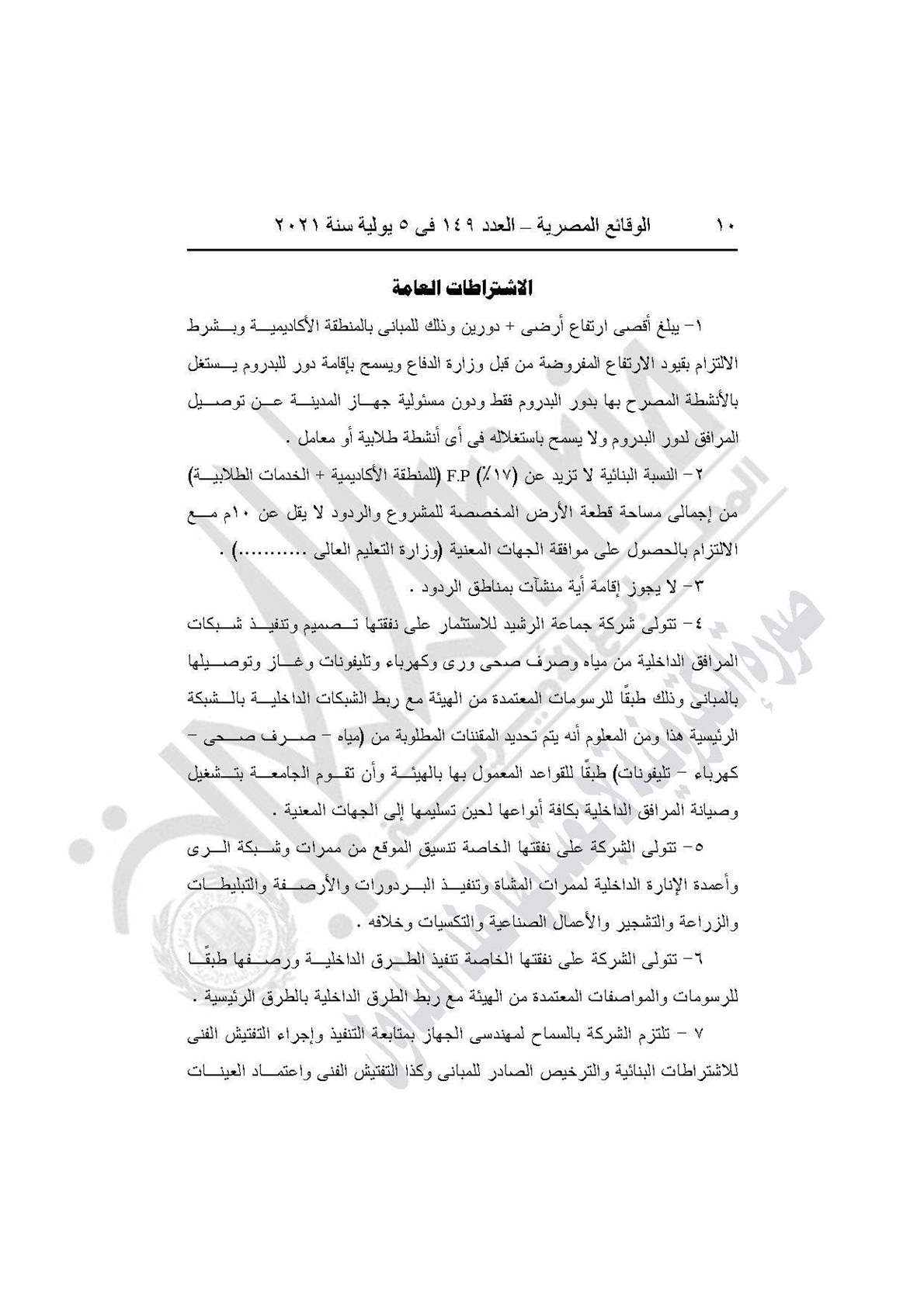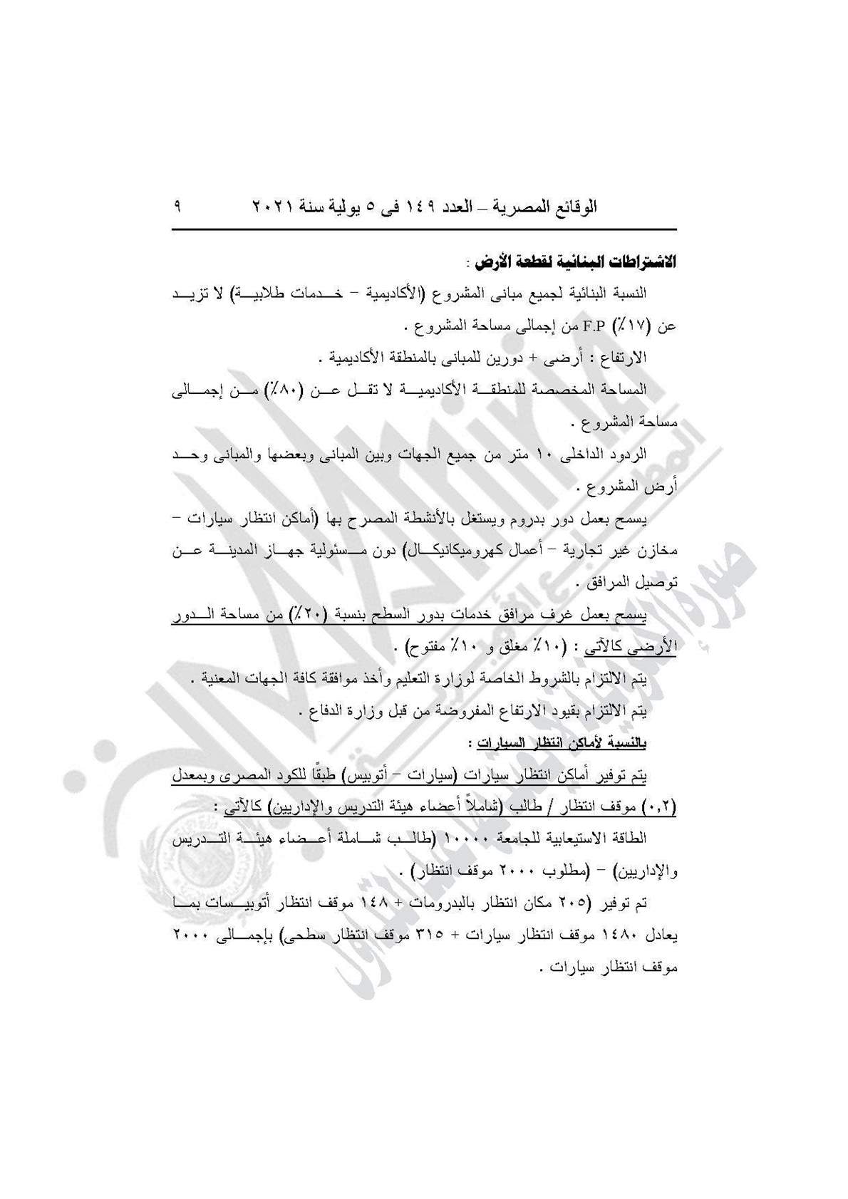 وجاء في المادة الثانية للقرار "تلتزم الشركة بالاشتراطات البنائية المعمول بها كحد أقصى وبشرط عدم تجاوز قيود الارتفاع المسموح بها من قبل وزارة الدفاع".