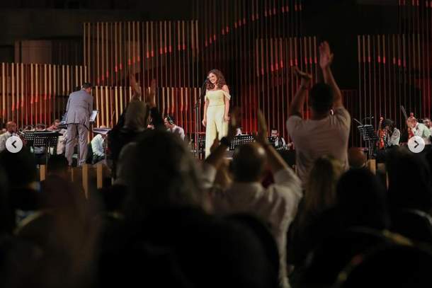ووجهت رسالة لجمهورها قائلة: "إنها تحيا في حضور الجمهور والغناء له"، ووصفت هذه اللحظة بأنها غير عادية.