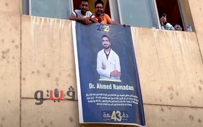 وتم تعليق "بانر" علي الكلية ومطبوع عليه صورة واسم الطالب ويدعي "أحمد رمضان".
