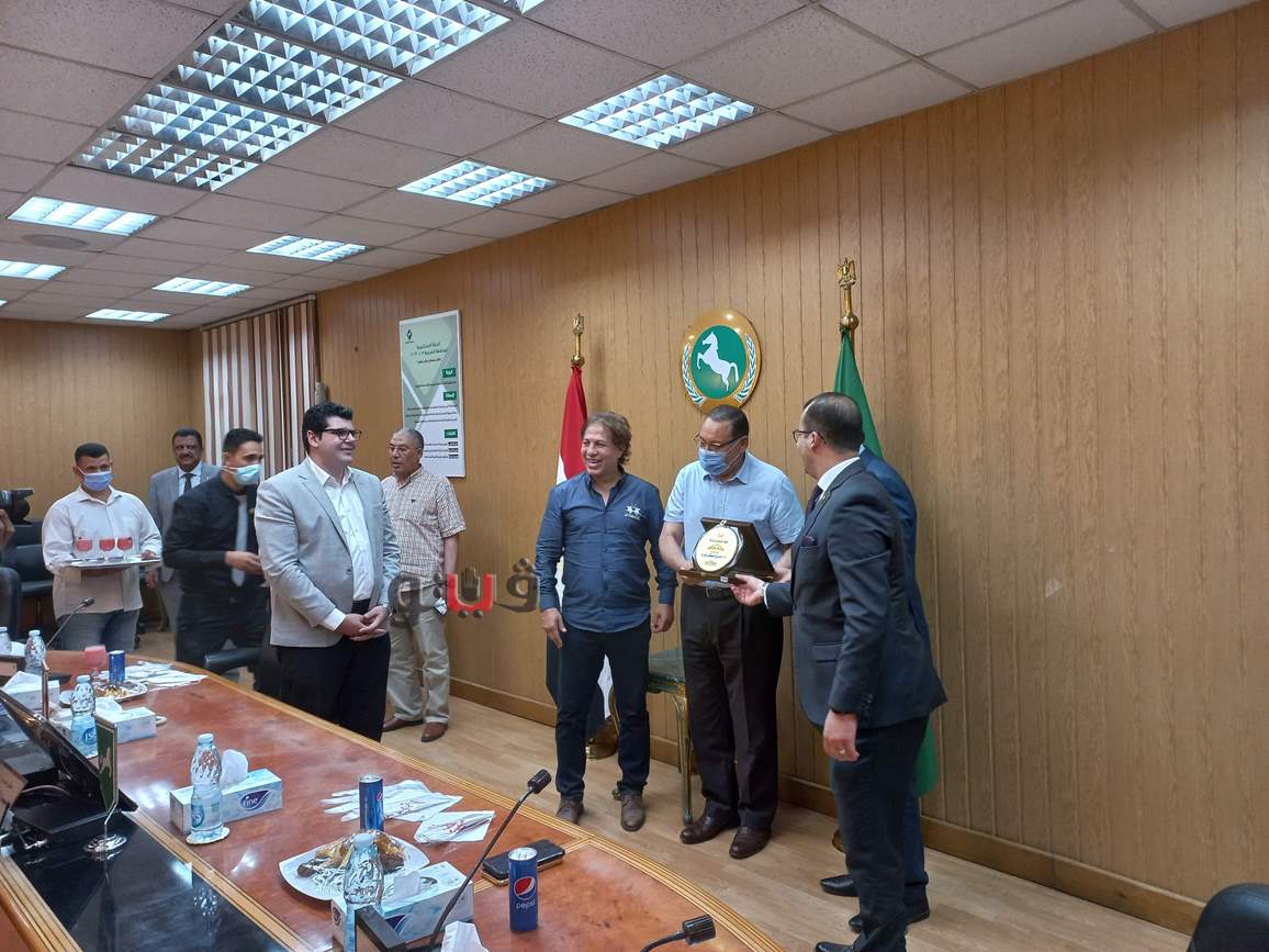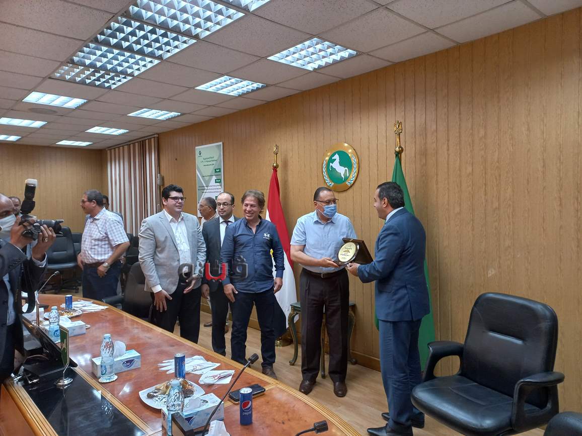 كما حرص الوفد علي إهداء المحافظ درع اللجنة تكريما له.