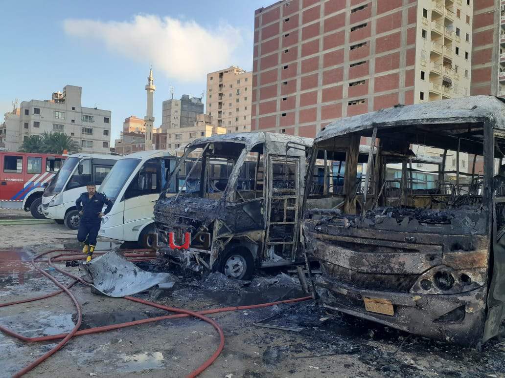 وأمر المحامي العام الأول لنيابات المنتزة بالإسكندرية، سرعة إجراء تحريات المباحث حول نشوب حريق بجراج بمنطقة سيدي بشر قبلي شرق المدينة مما أدى إلى تفحم ٥ أتوبيسات، دون حدوث أي إصابات، وندب خبراء الادلة الجنائية لمعاينة لرفع آثار الحريق وسؤال شهود العيان عن الواقعة.