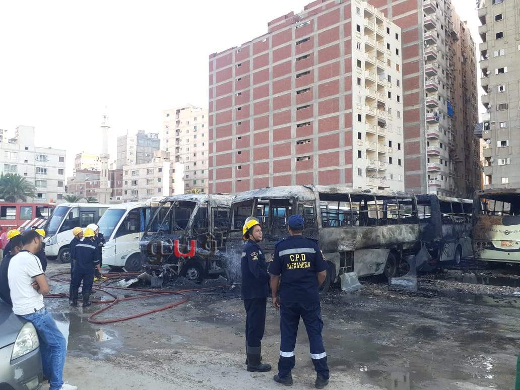 تفحم 5 أتوبيسات في حريق داخل جراج بالإسكندرية