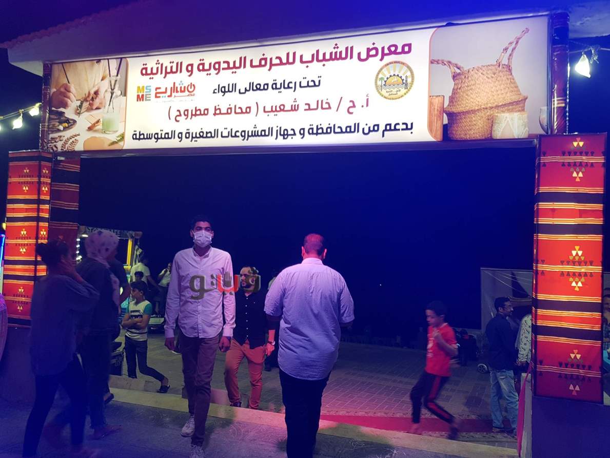 وتفقد محافظ مطروح ونائبته المعرض وتواجد الشباب والسيدات مشيدا بالمنتجات اليدوية والتراثية المعروضة مؤكدا علي دعمه الكامل للشباب.