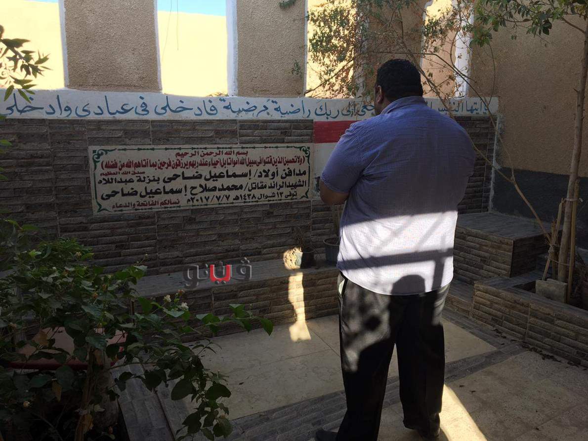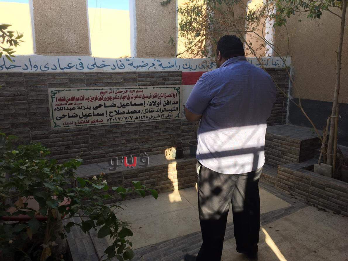 في البداية وقف أحمد صلاح شقيق النقيب محمد صلاح، أمام قبره قارئا الفاتحة له، وقال إنه يشعر حين يقف أمام قبر شقيقه أنه يقف في روضة من رياض الجنة، فشقيقه شهيد ضرب أروع مثال في التضحية من أجل الوطن هو وزملائه.