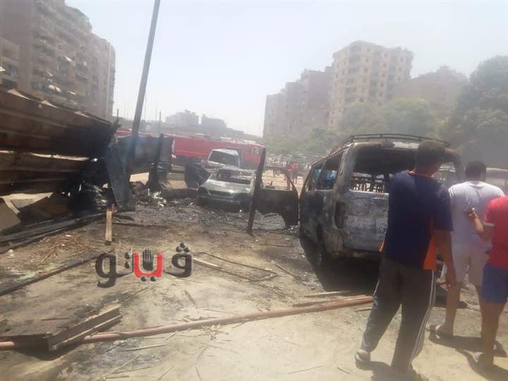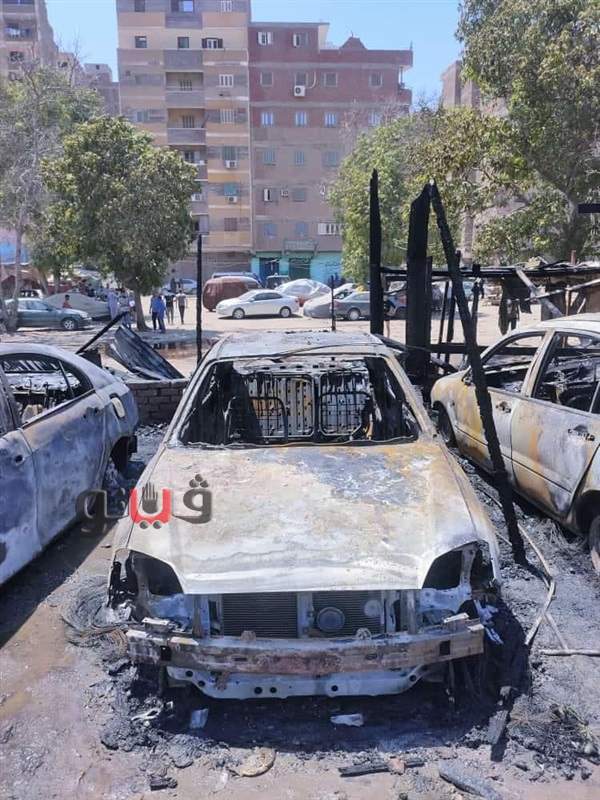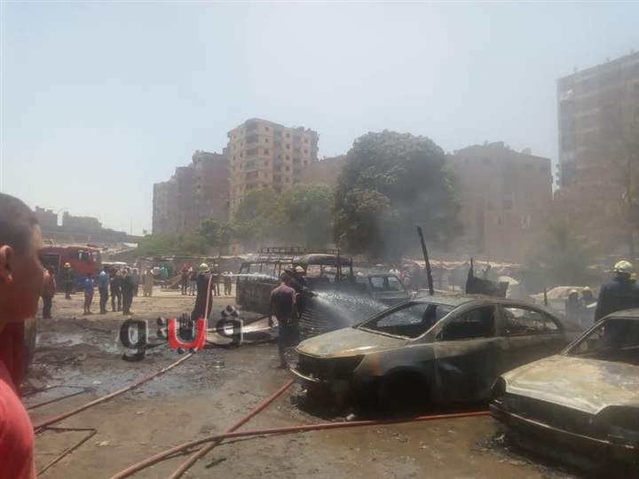 لحظة تفحم 12 سيارة داخل جراج بالمرج | فيديو
