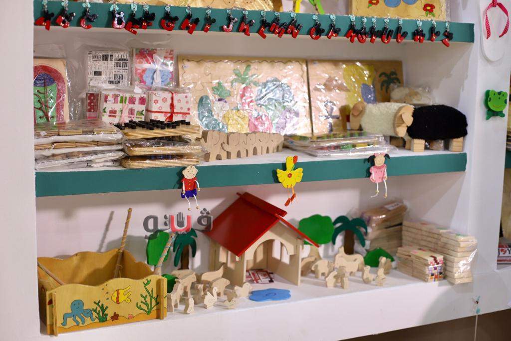 ذلك إلى جانب مجموعة من المصنوعات الرخامية وبعض أشكال الخزف الرفيع والتماثيل الخشبية، بالإضافة إلى بعض الألعاب المقدمة على طريقة برايل على الكوتشينة والشطرنج وغيرها من ألعاب الذكاء.