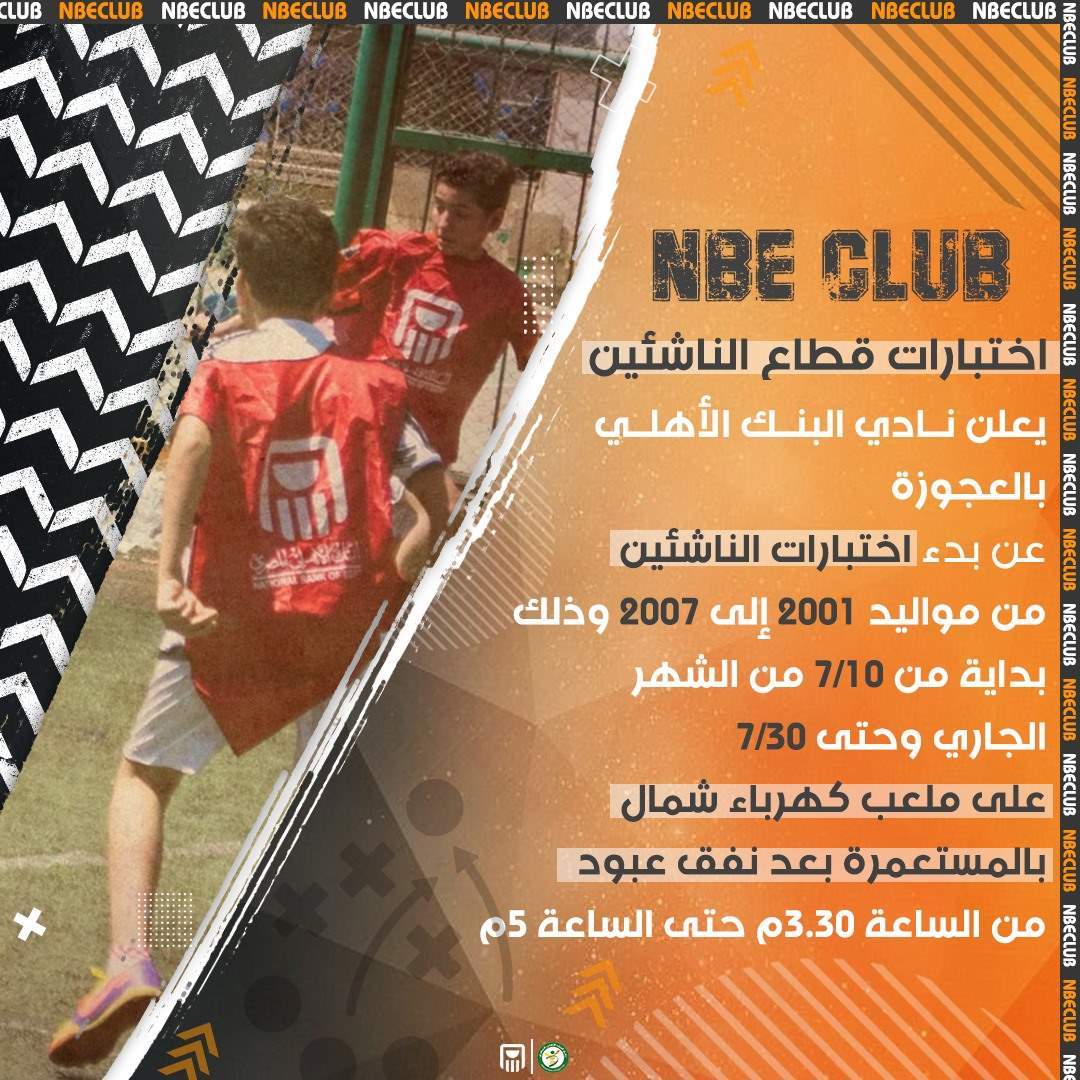 وتقرر أن تكون اختبارات الناشئين بنادي البنك الأهلي من مواليد 2001 حتى 2007.