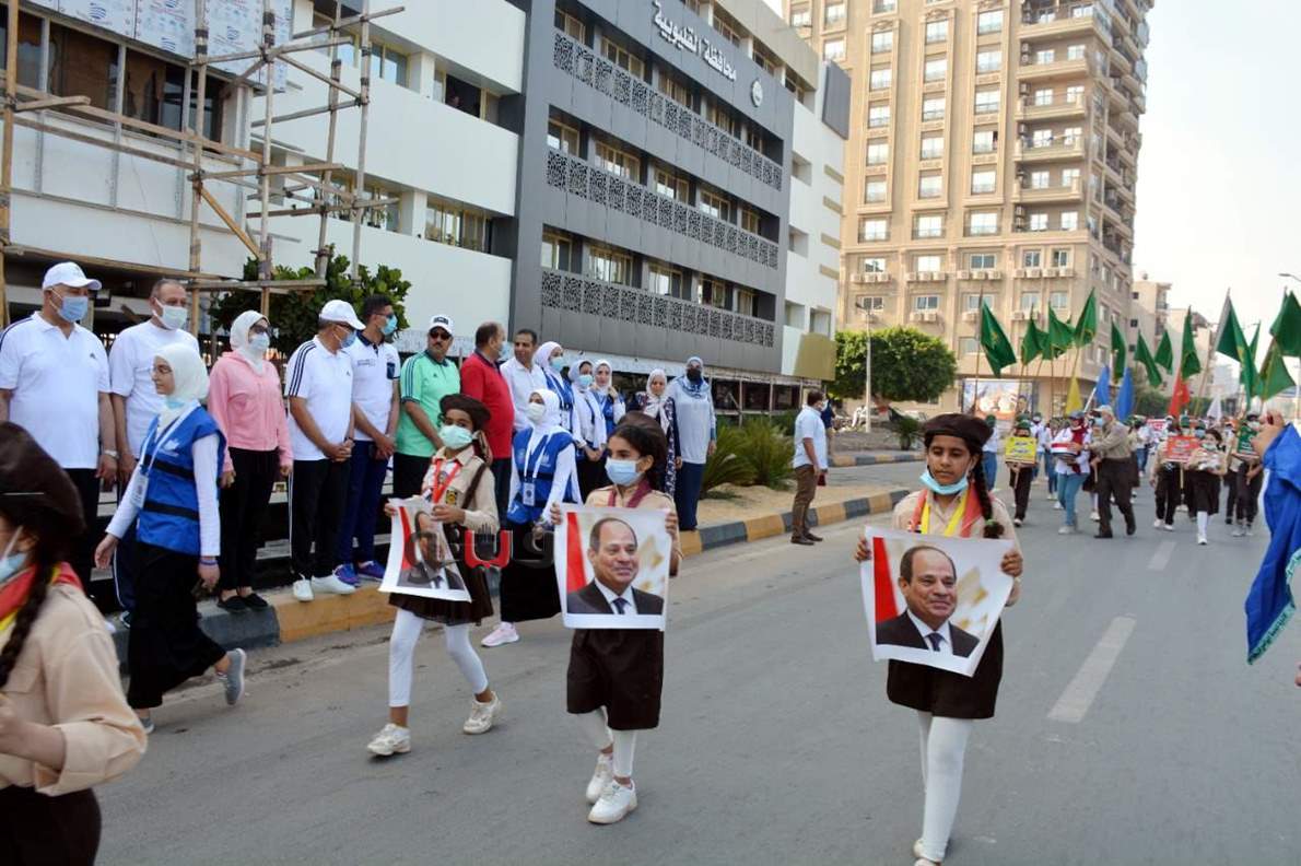وشارك في المسيرة الدكتورة إيمان ريان، والدكتور سمير حماد نائبي المحافظ، والدكتور محمود الصبروط وكيل وزارة الشباب والرياضة بالقليوبية، والمهندس علي عبدالستار رئيس مدينة بنها وعدد من القيادات التنفيذية بالمحافظة.