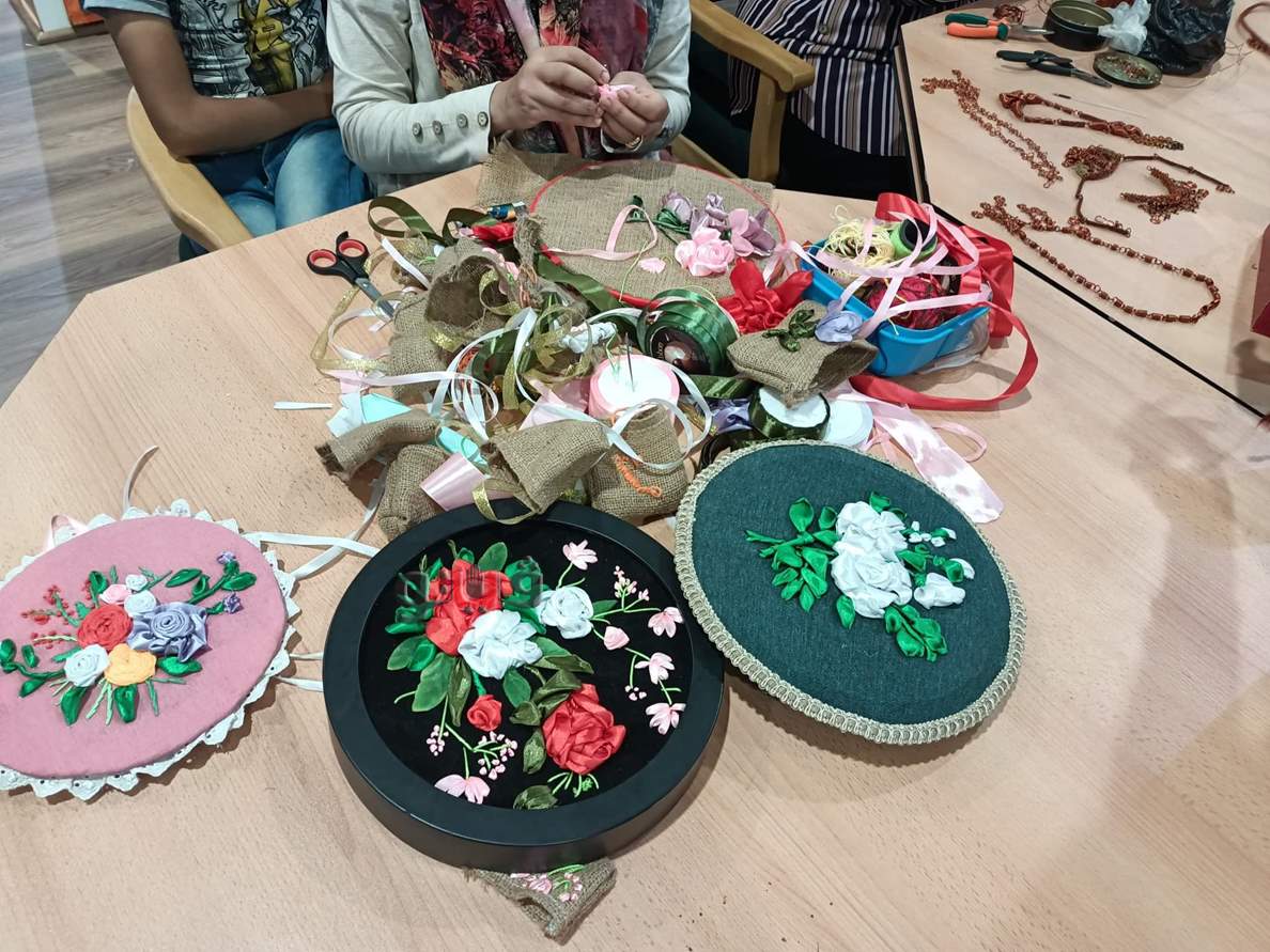 "أقوم بعمل التطريز على الساتان، للخروج بالعديد من الأشكال المختلفة، باستخدام عدد كبير من أنواع الخيوط، والعمل على ابتكار العديد من الأشكال المميزة على الخيش الصوف، بجانب بواقي الأقمشة التي يتم تشكيلها لتصبح لوحة فنية رائعة"، تقول أميرة جبريل، مدرسة بأحد معاهد محافظة الشرقية، والمشرفة على ورشة التطريز بجناح الأزهر.